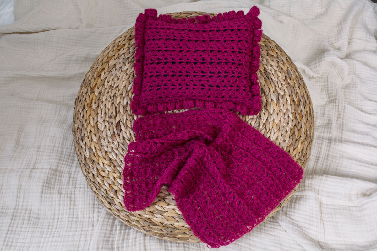 Häkel Set (Kissen mit Füllung + Decke + Mütze + Haarband) SALE / ABVERKAUF!