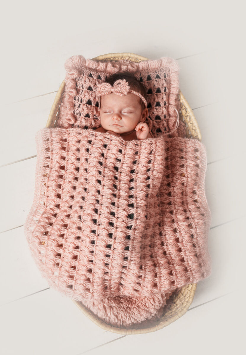 Häkel Set (Kissen mit Füllung + Decke + Mütze + Haarband) SALE / ABVERKAUF!