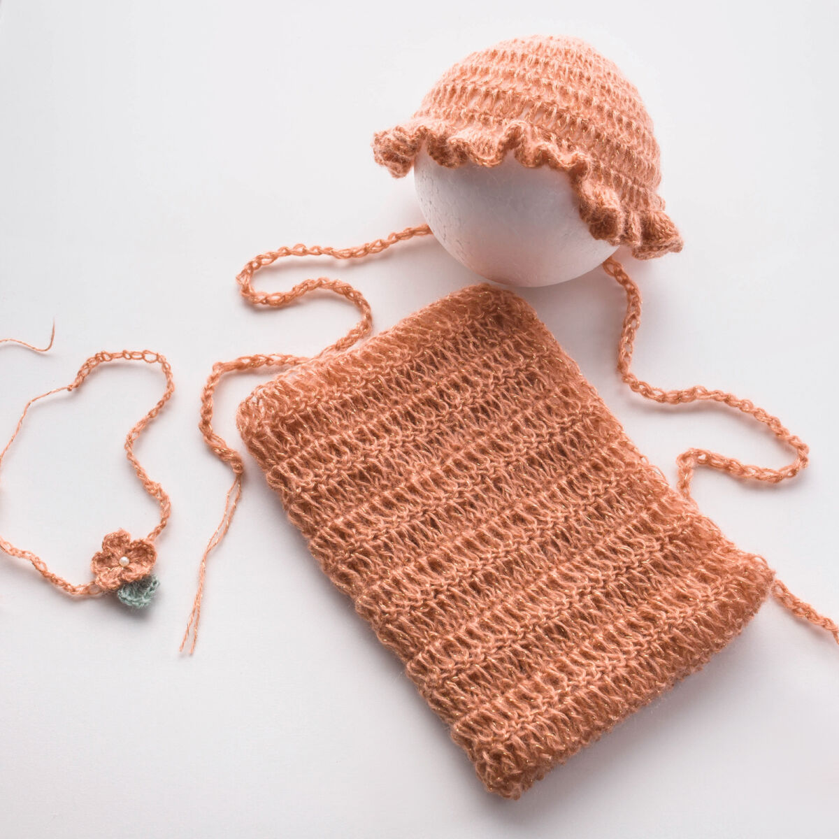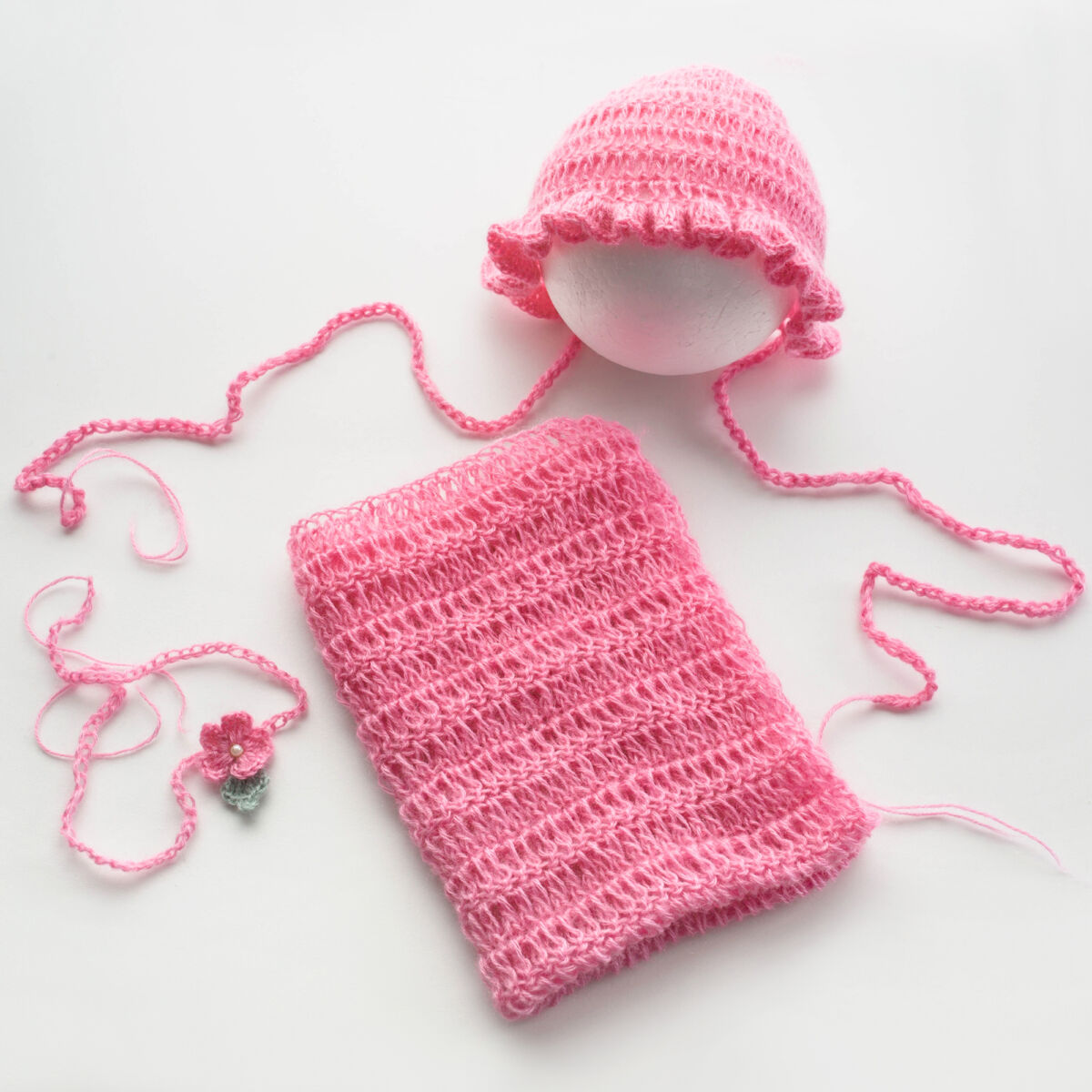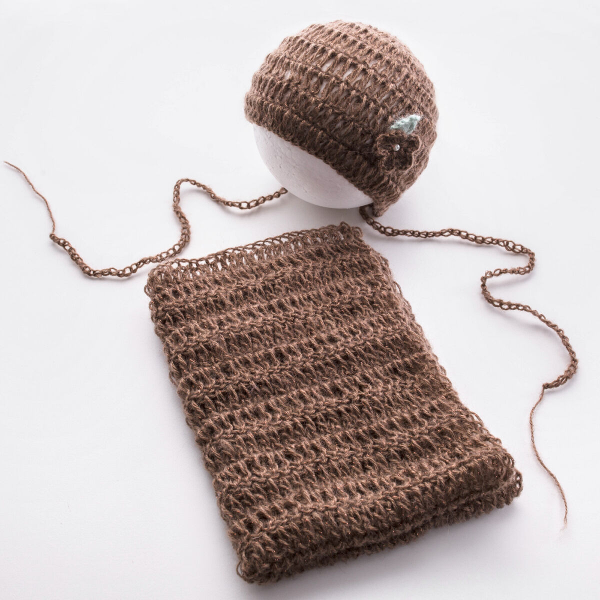 Liebervoll handgefertigtes Set wurde aus kuscheligem Wolle (10% Mohair, 10% Wolle, 80% Acrylist) gehäkelt.