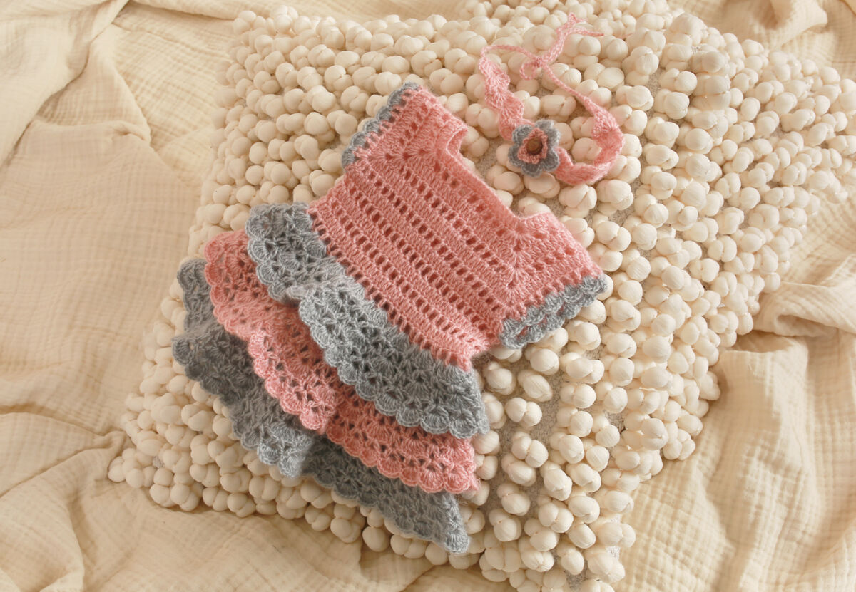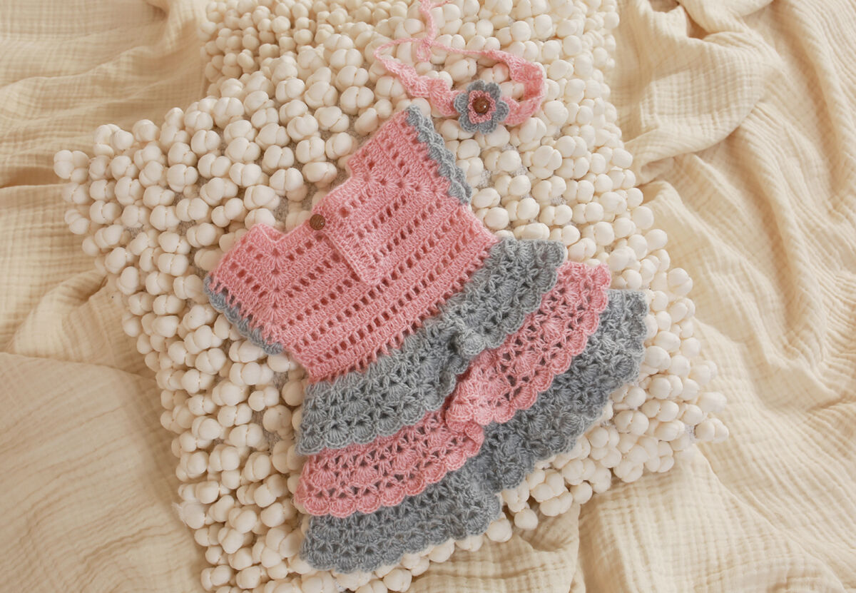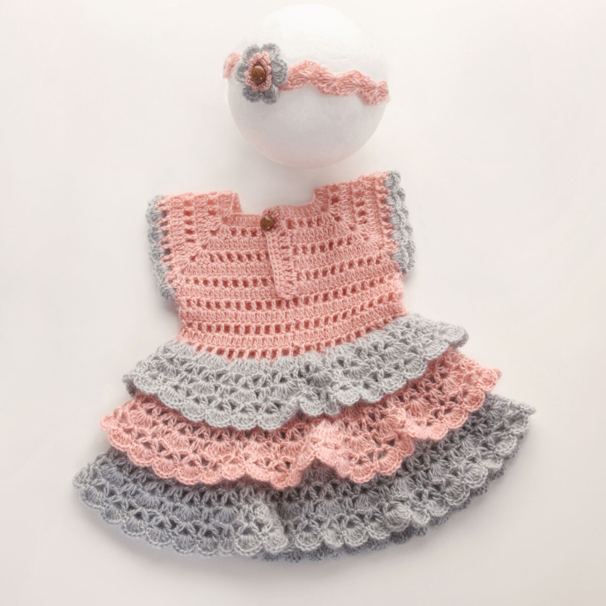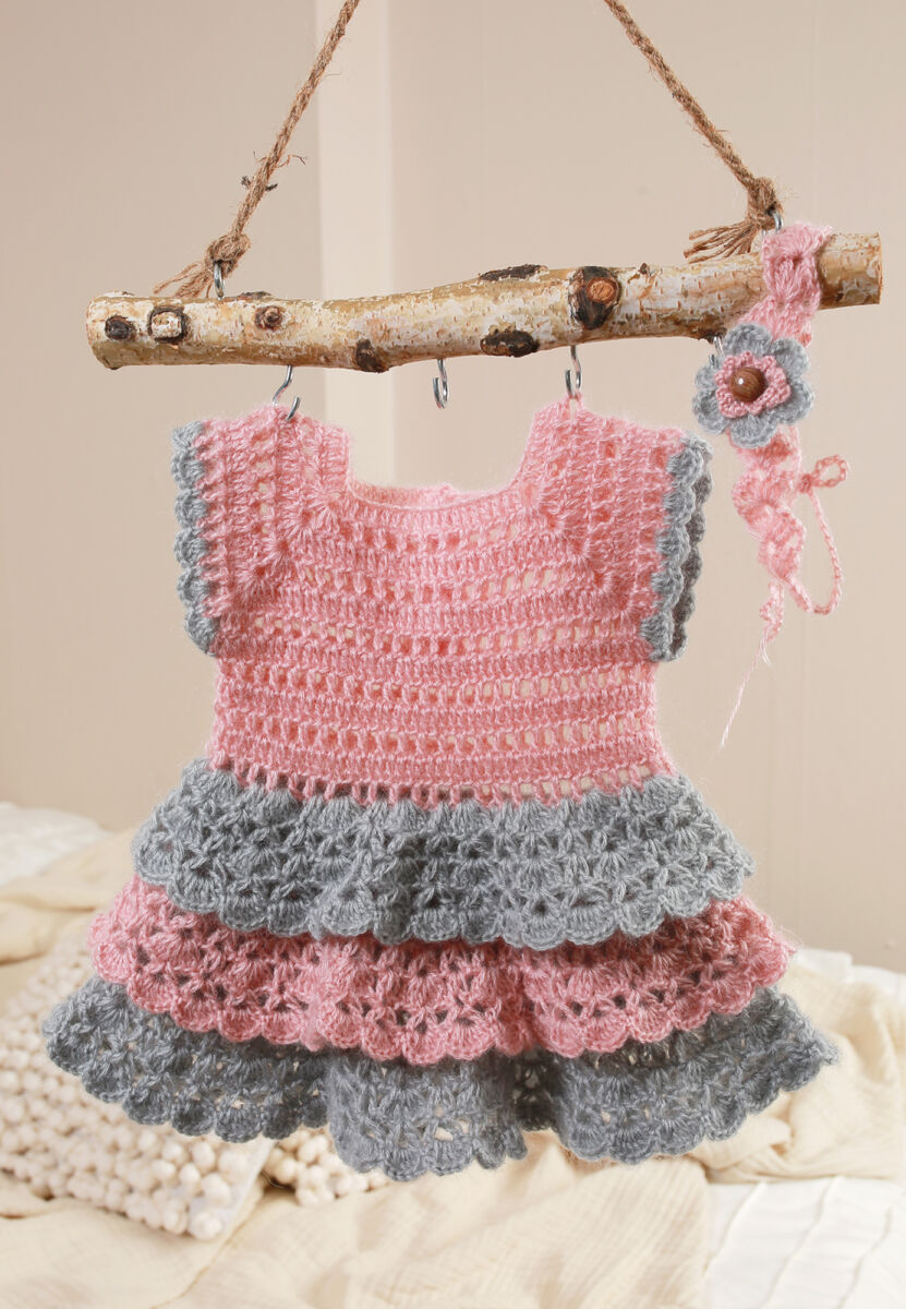 Häkel Kleid und dem passenden Haarband für Mädchen.
