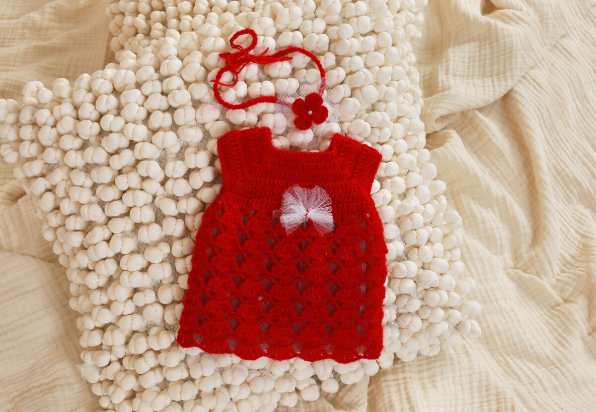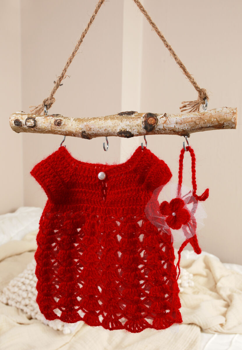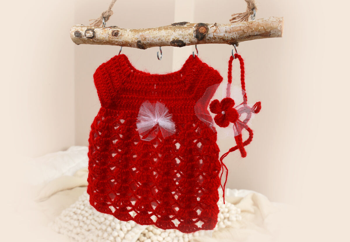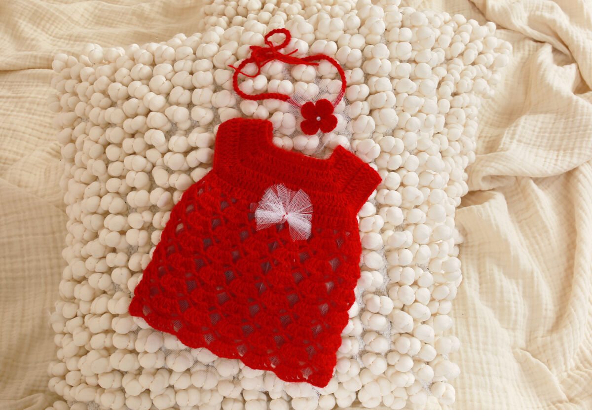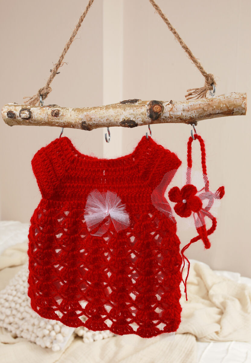 Liebervoll handgefertigtes neugeborenen Kleid wurde aus kuscheligem Wolle (10% Mohair, 10% Wolle, 80% Acrylist) gehäkelt.