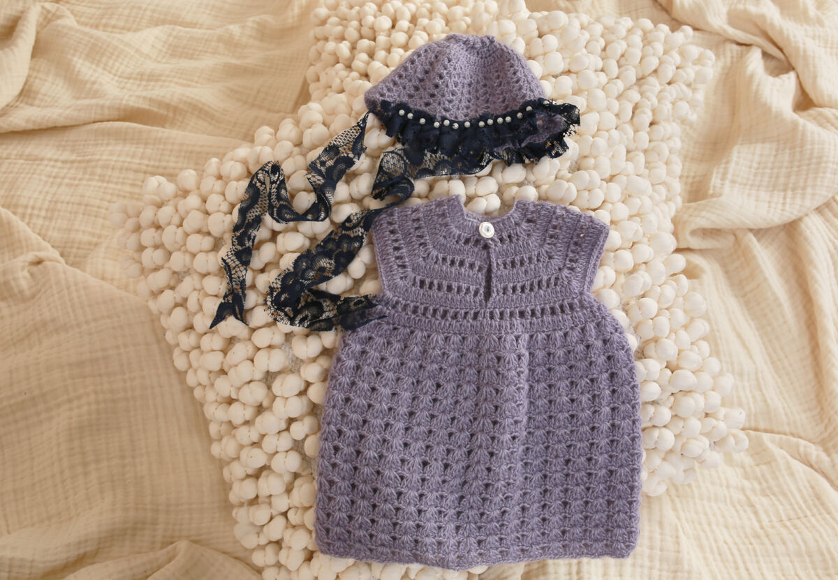 Häkel Kleid und dem passenden Mützchen für Mädchen.