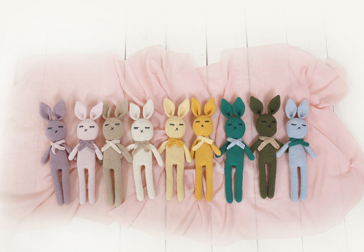 Dieses süße häkel Hase ist in Farben, 1401 Natur, 1438 Beige, 1478 Syren, 1488 Hell Rosa, 1410 Pink, 1470 Cerise, 1447 Hell Pfirsich, 1448 Lachs, 1460 Coral, 1404 Hell Gelb, 1435 Senf Gelb, 1453 Hell Grün, 1492 Mint Grün, 1429 Benzin, 1487 Armee Grün, 1450 Himmel Blau, 1479 Hell Blau, 1417 Lavendel und 1455 Eis Blau.