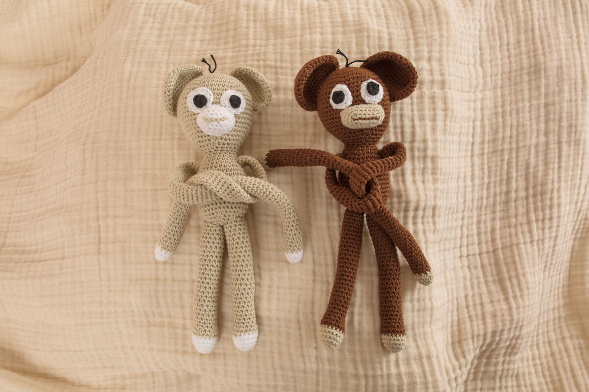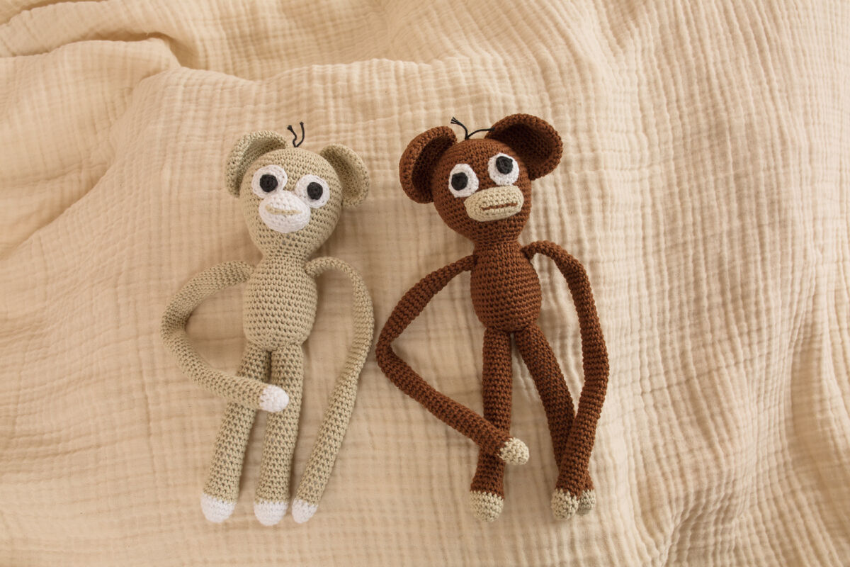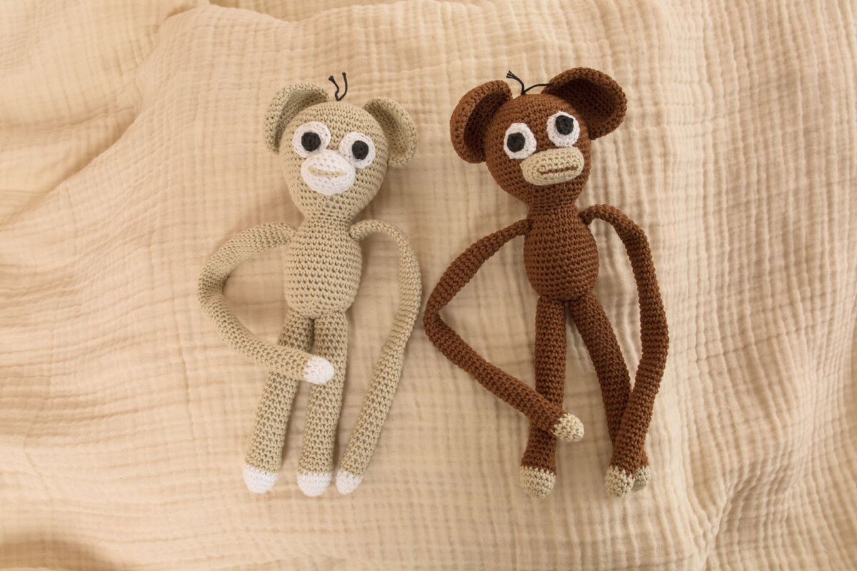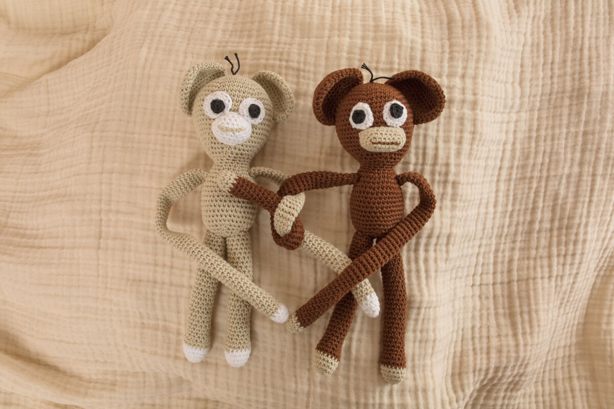 Dieses süße häkel Affe ist in Farbe, Creme und Braun erhältlich.