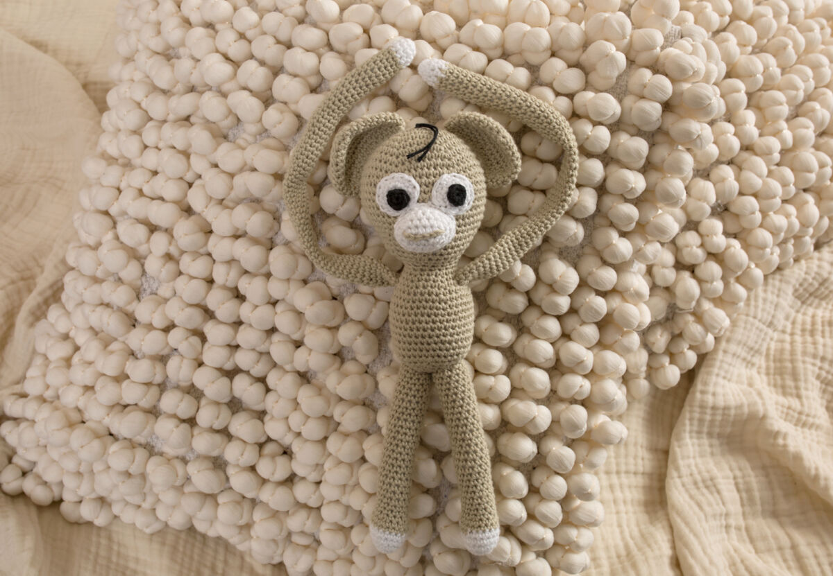 Die kleinen Händchen von Eurem Baby können den kleinen Affen Ohren oder den langen Armen prima greifen und festhalten – zum Nuckeln, Kuscheln, Trösten und zum Einschlafen immer stets der kuscheliger begleiter.