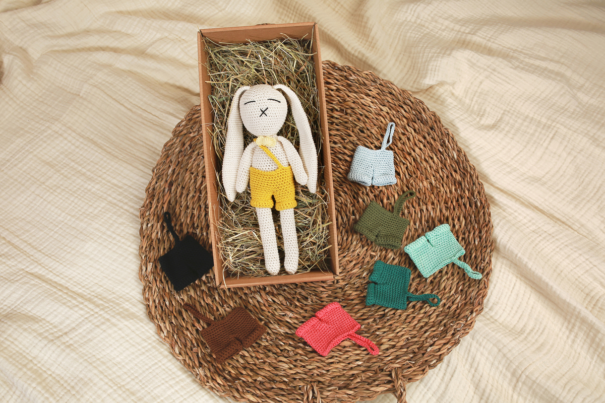 Damit auch für den kleinen Schatz genau das richtige dabei ist, ist das Häschen als Jungen und Mädchen in unterschiedlichen Farben erhältlich. Durch das austauschbarer Outfit kann man das Set erweitern.