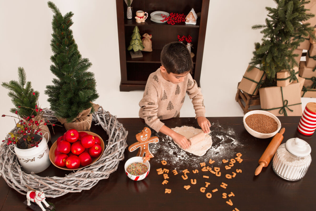 liebevoll dekorierte Weihnachtskulisse (Weihnachtsbäckerei & Geschenkhimmel)